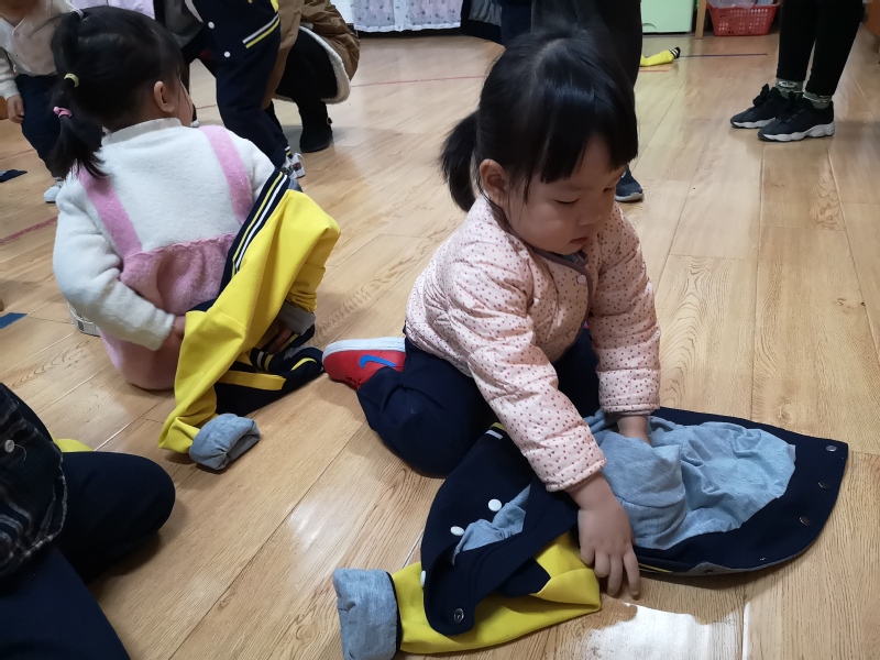 一点一滴的小事就是这么容易在日常生活中发生,孩子们在午睡前后,我们发现有很多的宝贝在穿脱自己的衣物时有些困难和费力,于是,我们决定要让孩子们自己尝试,学会自己穿衣!
