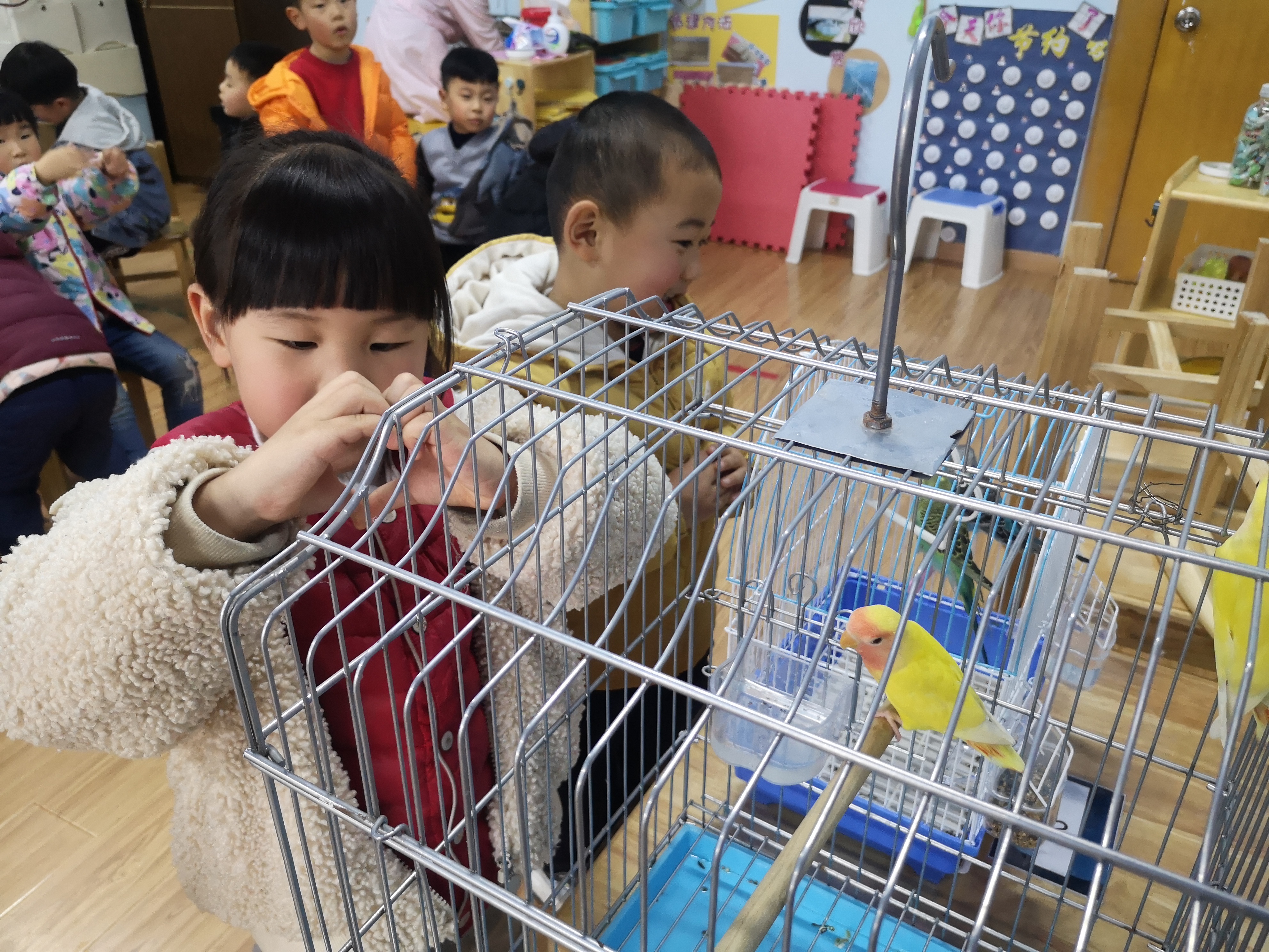 每一位小朋友的小眼睛都直直地盯着“新朋友”。仿佛有着说不完的话。这个新朋友加入中五班班级,让小朋友们都变得激动不已,孩子们已经开始商量怎么照顾鹦鹉的日常生活?爱吃什么?爱玩什么?纷纷动起了小脑瓜开始为小鹦鹉献计献策。