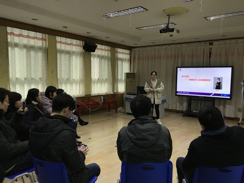 随着时间的流逝,班级的孩子都已经在大班学习生活了近半年了,很快就要离开幼儿园进入小学阶段了。孩子从幼儿园进入小学是人生道路上的第一个转折点,小学和幼儿园对于孩子来说是两个不同的天地。幼小衔接是幼儿园和小学教育两个教育阶段的平稳过渡的教育过程,也是儿童成长过程的一个重大转折,这个阶段也是处于人类整个逻辑思维形成和使用过程中所要经历的三次环境转换的第二次转换期,幼小衔接的重要性由此可见,意义重大。因此,2019年1月5日上午,合工大幼儿园大三班的老师请专家对家长们进行了一次关于“幼小衔接”的培训活动。