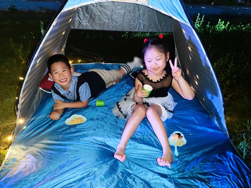 下午4点,属于小朋友们的仪式感来了。小朋友入场,在专属大三班的签名板上签字留影。一切准备就绪,6点的毕业典礼来临,小朋友观看回忆视频、表演节目《名字叫中国》《再见了,老师妈妈》、穿越毕业门,领取毕业证书、最后合唱《毕业歌》。紧接着,小朋友们进入最喜欢的自助冷餐会环节,拿取自己喜欢吃的食物,结伴就坐在小桌子旁边闲聊,在帐篷里谈心干杯。吃饱喝足,小朋友们装扮上荧光手环,各种发光的头饰、手饰,进入期待许久的荧光舞会。最后的游戏环节,小朋友们意犹未尽,9点半领取毕业礼物后安全离园。