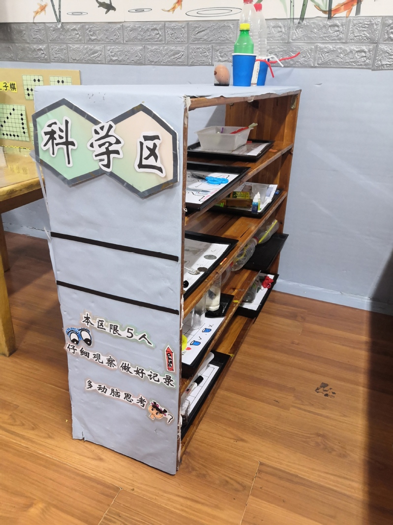 新《纲要》指出:“为幼儿探索活动创造宽松的环境,让每个幼儿都有机会参与尝试,支持、鼓励他们大胆提出问题,发表不同意见,学会尊重别人的观点和经验。”实践证明,幼儿进行科学探索的活动,可以营造宽松自由的气氛。因此为了给孩子们更好教学环境和氛围,我们大五班于11月26日进行了区角科学区开发的活动。本次科学区的开发大五班老师精心组织,科学安排,内容充实,让幼儿对科学有了更为直观感性的认识,取得了良好的效果。