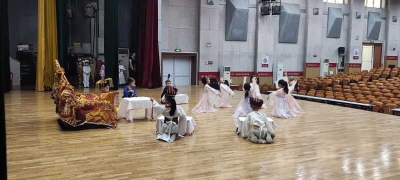 当看到玉皇大帝上场后,孩子们震惊了,玉皇大帝的动作和表情都非常的符合角色要求,孩子们都沉迷在此刻的表演中,随后每一个小朋友都更加认真地加入到排练中,自己的台词、动作、表情等,都要做到全神贯注。
