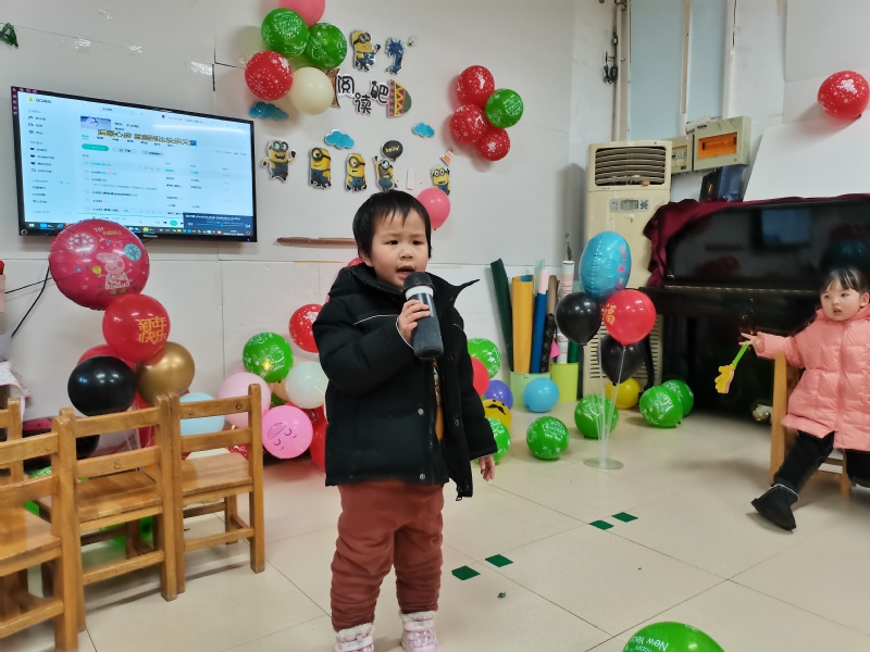 2020年12月31日上午我们开展了集体教学活动,引导孩子们认识和了解元旦的由来,知道元旦的到来意味着自己长大了一岁,可以做力所能及的事,并且共同学习了《新年好》歌曲。下午活动正式开始,首先孩子们和老师一起共同歌唱《新年好》,孩子们准备了各种各样不同形式的表演活动,看!孩子们美丽的舞姿、动人的歌声、声情并茂的诗歌词等让人目不暇接,最让孩子们感兴趣的就是李歆艾小朋友准备的魔术,孩子们瞪大眼睛,惊呼“太神奇了!!!”孩子们的表演惟妙惟肖,充满童趣,让我们不由得惊叹孩子们的飞速成长!在紧张激烈的抢椅子游戏中,周高川紧紧盯住板凳,围着板凳转圈,音乐一停,立马坐在板凳上,最终取得了胜利!在踩气球游戏中,孩子们个个都很勇敢,不一会儿气球就都被孩子们“消灭”光了。