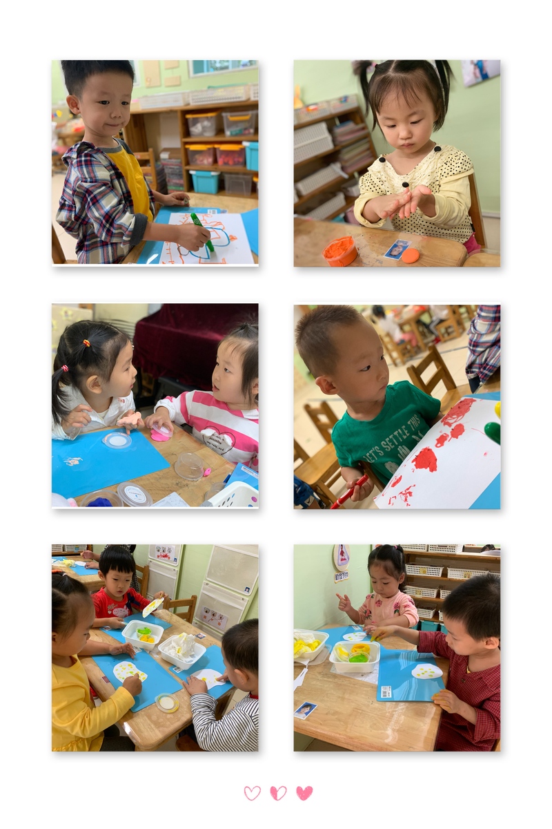 我们最喜欢的是美工区,因为美工区有神奇的玉米粒,有好玩的手指画有多彩的超轻粘土。