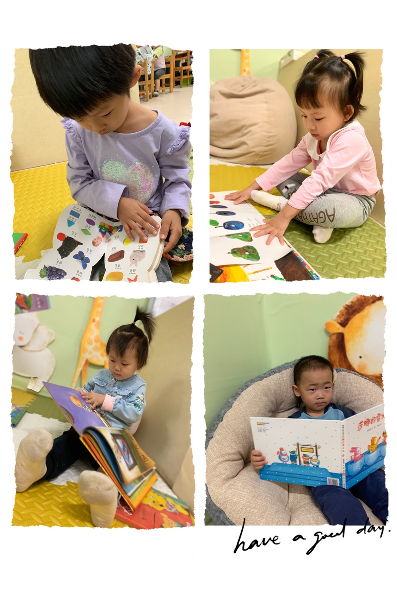 看,我们的阅读区多温馨,我们还有很多很多的绘本呢!