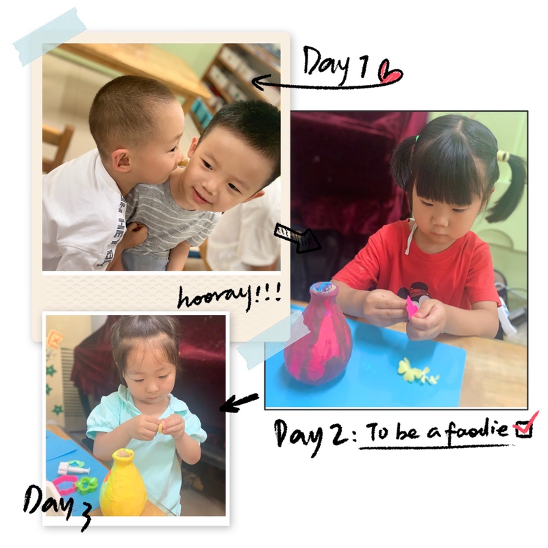 活动中,孩子们用粘土的形式给梦想瓶粘上美丽的颜色,用小贴纸将自己的梦想瓶装饰的与众不同,最后,老师将孩子们的梦想记录在卡纸上装进梦想瓶中。孩子们在这一过程中学会表达自己的想法,知道梦想需要通过努力才可以实现。小朋友们,期待你们梦想瓶里的梦想都可以实现哦~