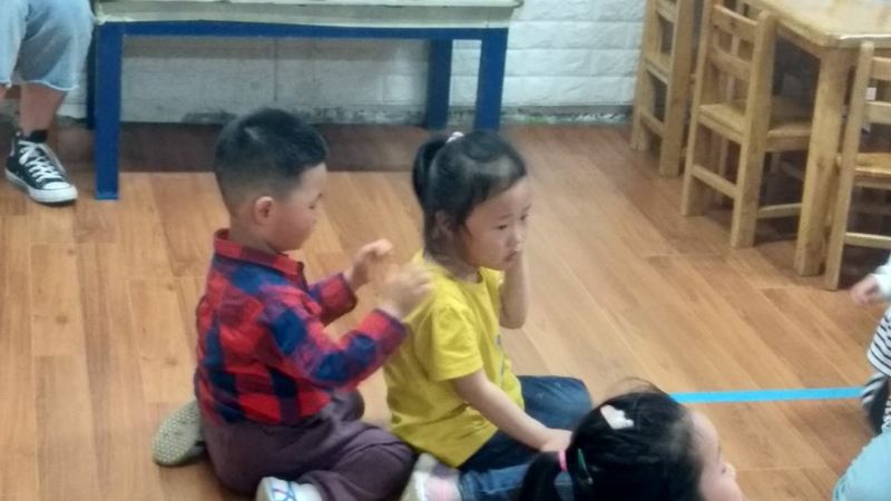 模仿中班年龄大、能力较强的幼儿,从而学习、构建自己的知识结构。通过模仿哥哥姐姐的动作及行为来完善自己在游戏中的不足。